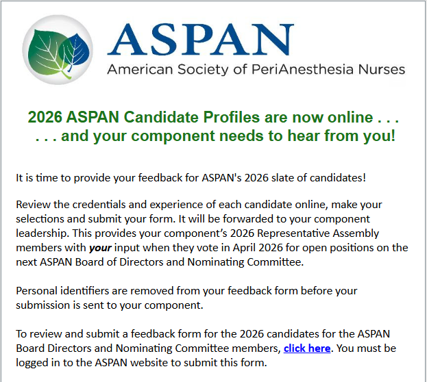 VOTE! Your Opinion Counts! 2026 ASPAN Candidate Profiles and Feedback Form. Deadline Feb. 28, 2026